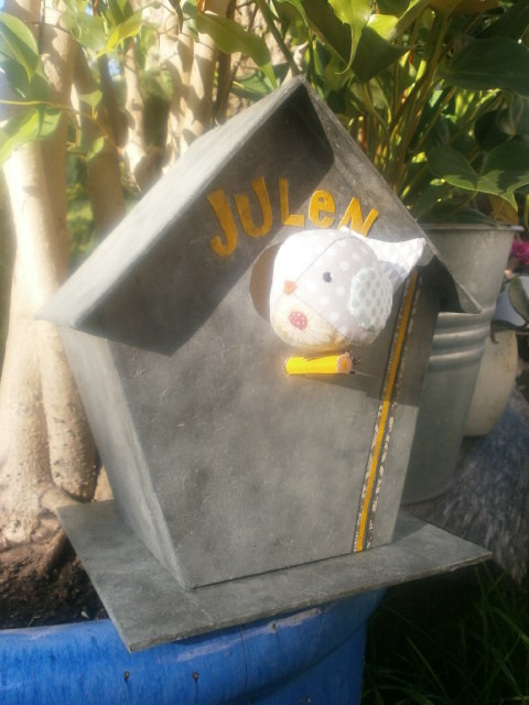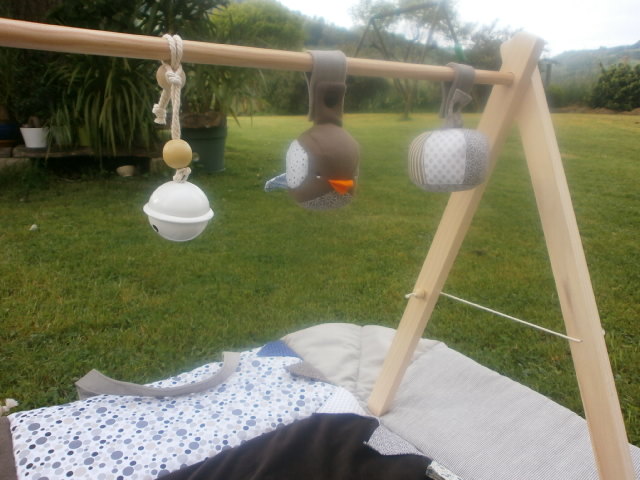 L’oiseau et le grelot sont à accrocher sur une arche (arche qu’il avait déjà). L’oiseau fait « pouette-pouette » en appuyant sur son ventre (au Pays Basque ils font ce bruit…oui oui )